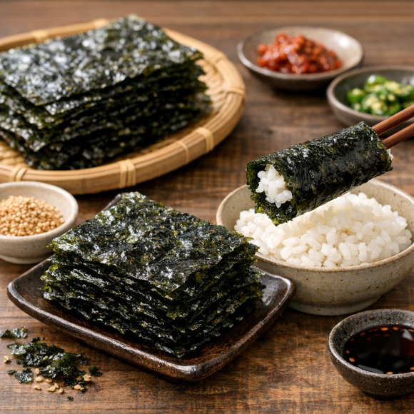 김은 미네랄, 식이섬유, 비타민이 풍부한 건강한 해조류 식품입니다. 적절히 섭취하면 장 건강, 혈관 건강, 다이어트 관리에도 도움이 됩니다. 맛있는 김으로 건강한 식탁, 응원합니다!